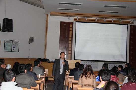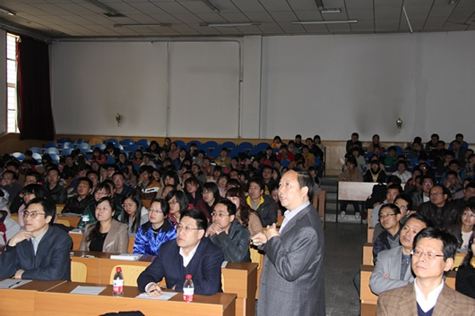 报告会上,涂永强院士主要从碳氢活化和烯炔环化反应两个方面介绍了相关工作的具体情况,并就其中的实验细节给予详细讲解,引起了从事相关研究方向师生的极大兴趣,报告中涂永强院士还就全合成有机化学在世界范围内的研究现状进行了比较和分析,简要说明了我国全合成有机化学的发展趋势。涂永强院士的报告高屋建瓴、深入浅出,理论与举例并重,报告中赢得了同学们阵阵掌声。报告会后,涂永强院士同与会师生进行了交流探讨,还就一些问题对365上市公司官网研究生进行了单独指导。