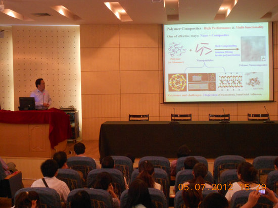 7月5日下午,复旦大学刘天西教授应邀来院作了题为《碳纳米材料的杂化修饰及其在聚合物基体中的协同分散》的学术报告,近200名师生聆听了报告。报告中刘天西教授从自己的研究工作出发,向与会的教师和学生讲解了无机材料与有机材料杂化过程中的分散问题,并对相关问题的研究进展进行了重点介绍。