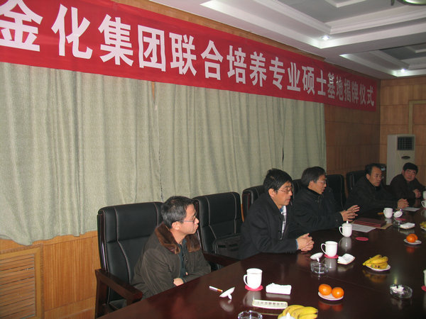 20121228,研究生学院、学位办、化学化工学院党政领导一行,前往金昌市河西堡,在甘肃金昌化工集团有限公司举行了365上市公司官网与金化集团专业硕士联合培养基地揭牌仪式,并向该企业受聘硕士生导师颁发了聘书。