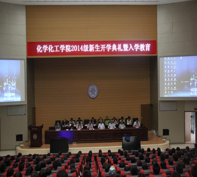 胡雨来院长首先致辞。他代表全院师生员工向2014级新生的到来表示热烈的欢迎,并详细的介绍了化学化工学院的历史沿革、学科体系、机构设置,师资配置以及办学特色和学科优势。他希望2014级同学珍惜进入大学殿堂深造的机会,立足新起点,创造新未来。