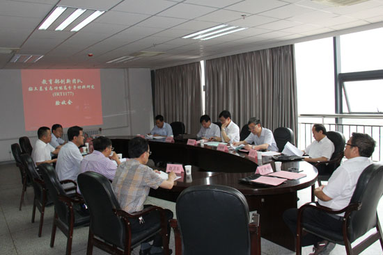 在省教育厅副巡员丁光明主持召开的验收会上,副校长董晨钟代表学校对各位专家表示感谢。教育部创新团队学术带头人雷自强教授从团队发展与平台建设、创新能力与社会贡献、科教结合支撑人才培养、团队文化与管理运行四个方面详细介绍了团队2012——2014年发展建设情况。
