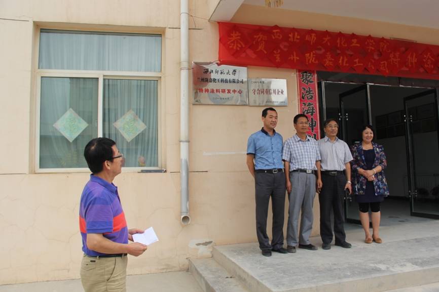 9月2日下午,我校化学化工学院与甘肃陇嘉化工科技有限公司合作成立的特种涂料研发中心在陇嘉化工科技有限公司举行了揭牌仪式。学校科研合作服务处、化学化工学院、甘肃陇嘉化工科技有限公司相关负责同志出席了揭牌仪式。