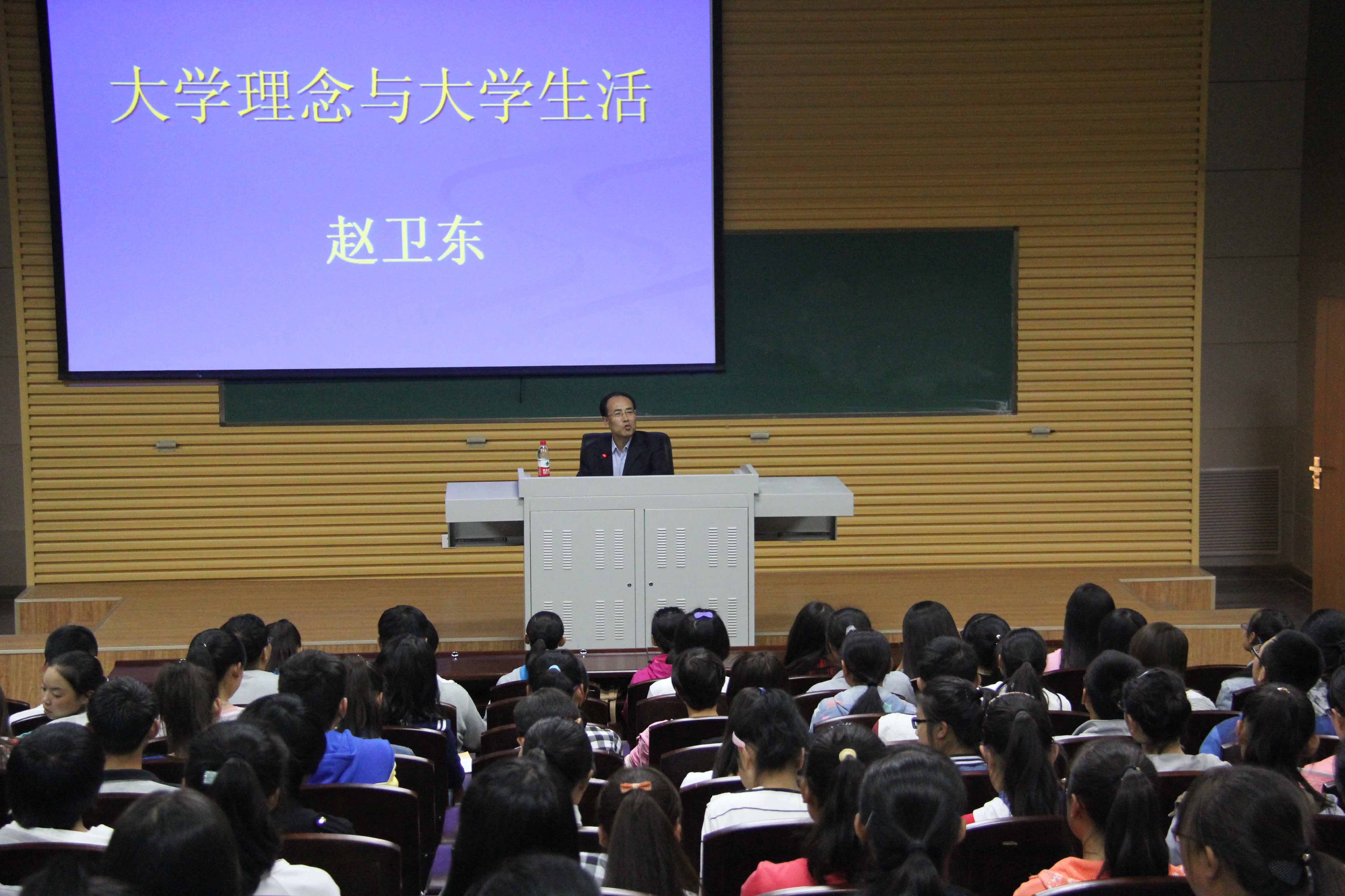 赵书记作了题为“大学理念和大学生活”的主题报告,他从大学是什么?大学应该是什么?大学有什么职能?三个方面回答了大学理念,从八个方面回答了如何度过有意义的大学生活。勉励新同学们要重新规划自己的人生,敢于面对新的世界,学会感恩,学会学习,掌握大学学习特点和学习规律,追求理性、学术、真诚和卓越,学会自立,学会爱情,努力在德、智、体、美各个方面得到全面,希望同学们加强自我管理自我约束,锤炼品行,带着师大人的大德走向社会,为国家富强、为实现中国梦贡献自己的力量。