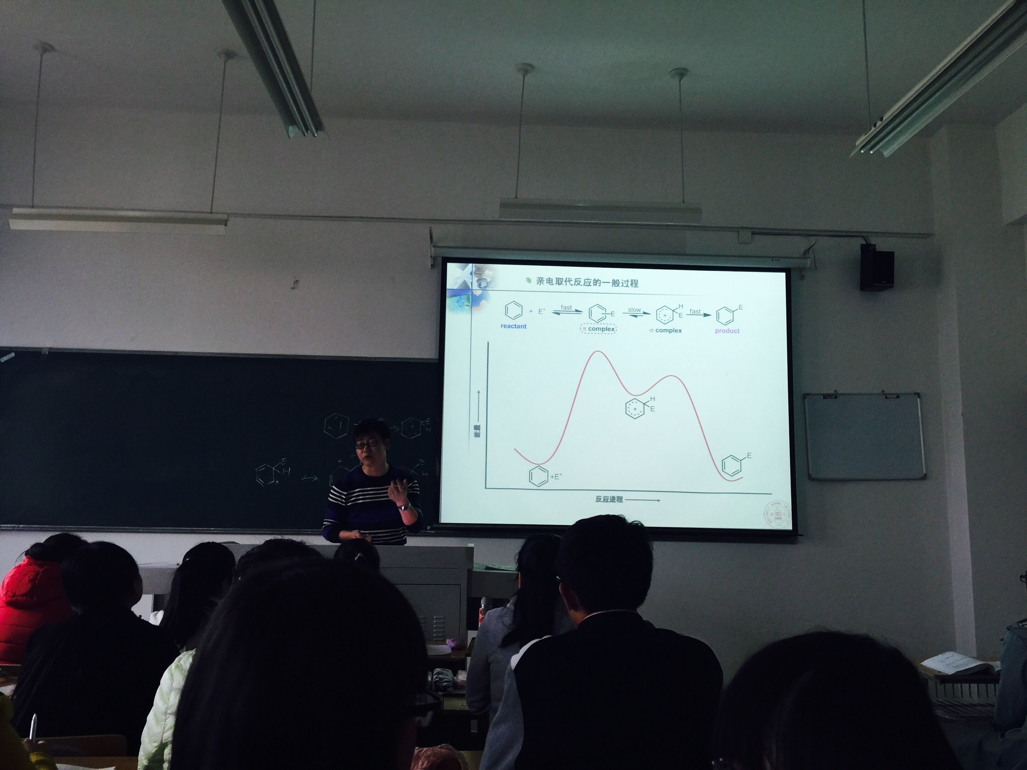 11月10日(星期二)1-2节课,在新校区218教室,有机组杨志旺老师进行了教学技能大赛公开课《有机化学Ⅰ》的讲授,贾晓东、王永成等评委、有机组老师以及其他青年教师参加了听课和评课。