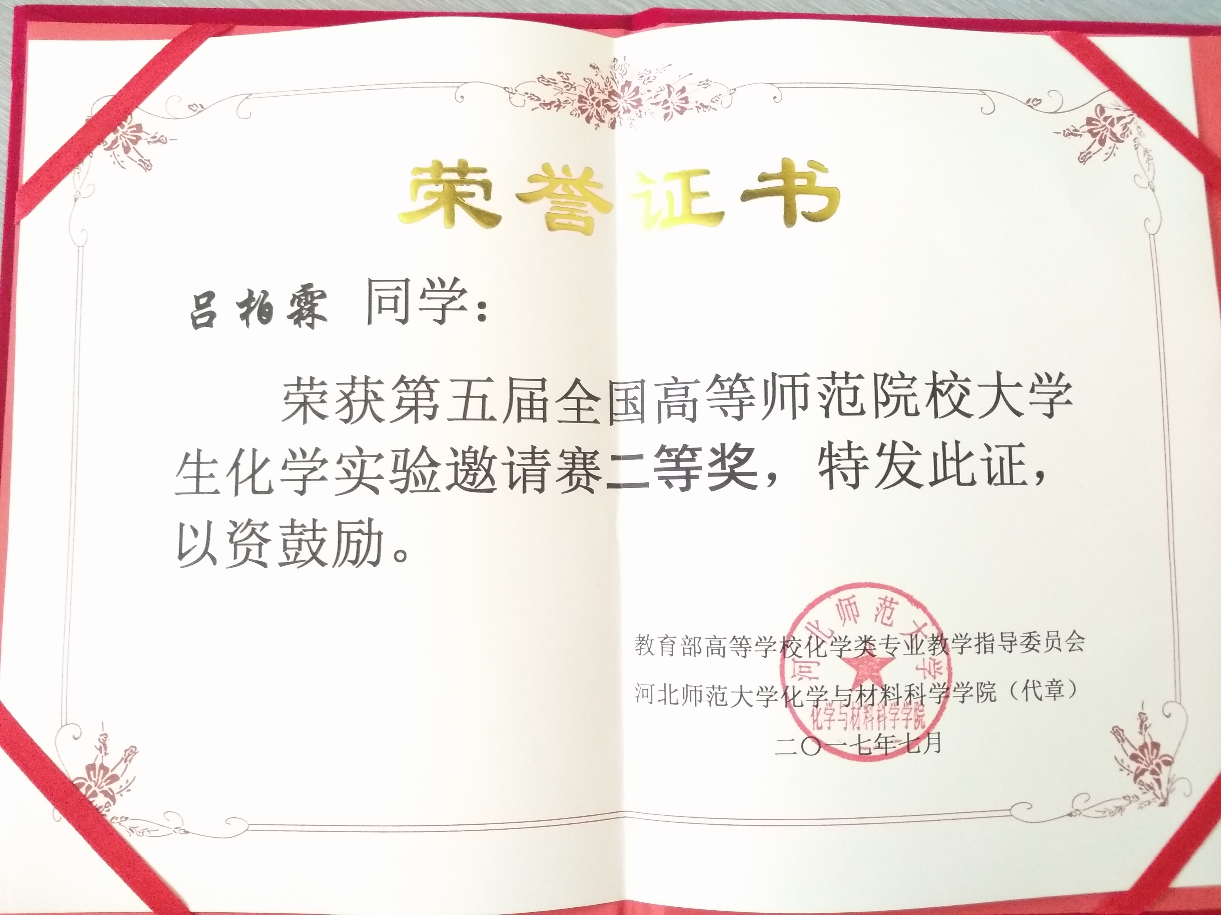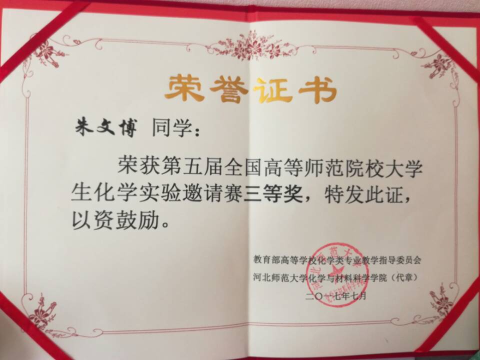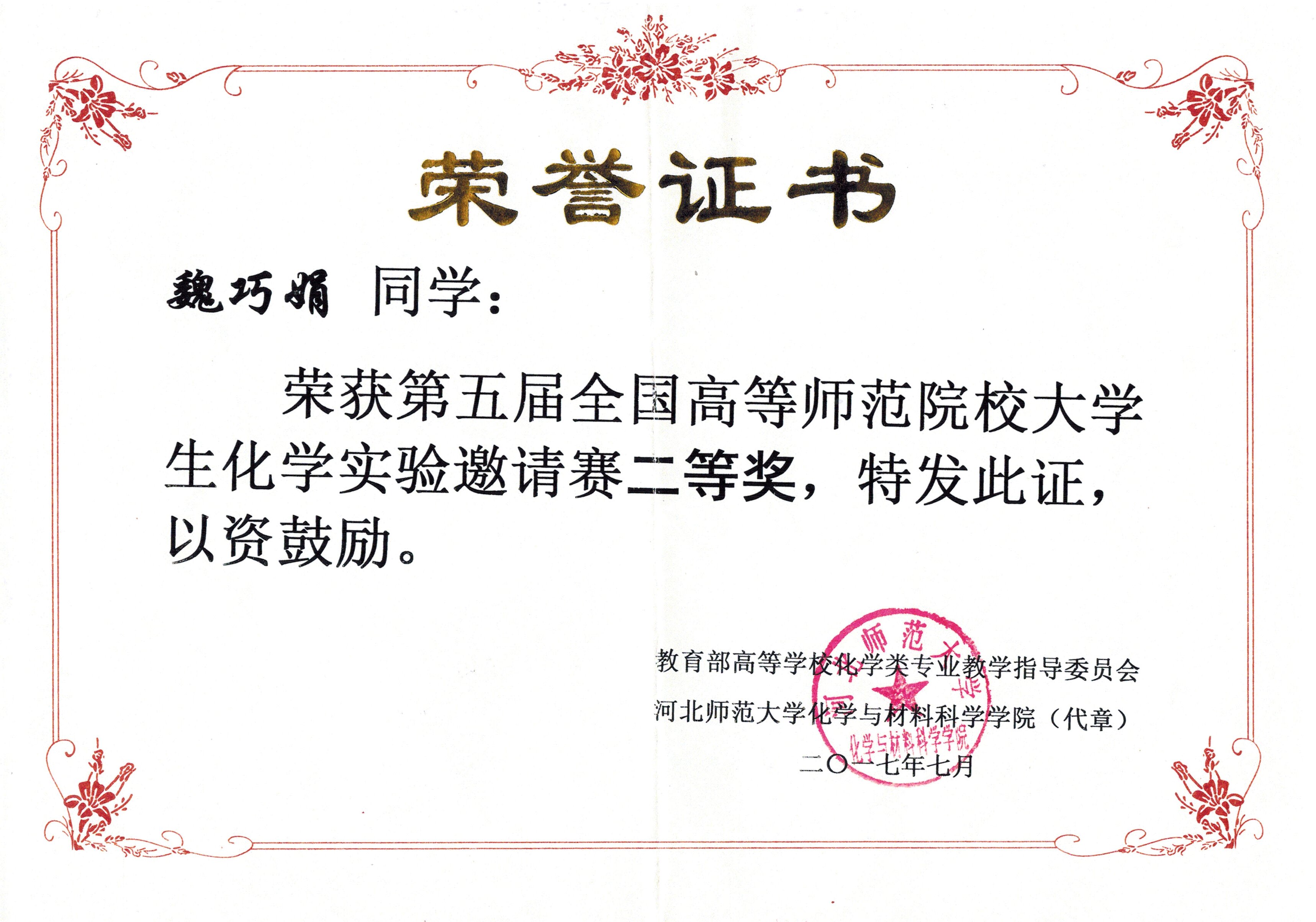 2017全国高等师范院校大学生化学实验邀请赛获奖