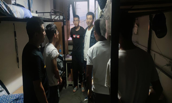 为深入了解2020年秋季学期学生到校情况,加强新学期学生宿舍安全教育,2020年8月30日晚,化学化工学院组织开展学生宿舍走访活动。学院党委书记赵辉、副院长宋鹏飞、党委副书记陈芳、正处级辅导员孟汇海老师、二至四年级班主任及辅导员参加此次走访。