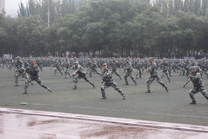 立正、稍息、跨立……听起来人人都能轻易做到,可在军训练习中,就不是那么简单的事了。单单军姿站立,就要同时做到收腹挺胸、两脚分开60度、后颈贴衣领等等多个细节,要做好可不容易。不过同学们在教官的指导下都尽力做得有模有样。虽然训练动作不断增多,大家依然精神饱满,不断练习着齐步、跑步、正步……一次次的进步使一个个方队越来越有模样!