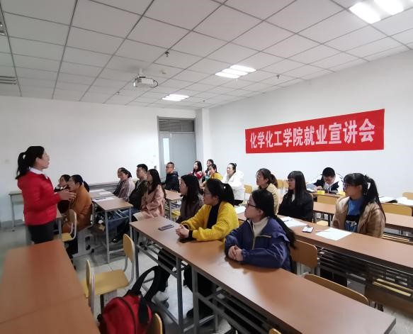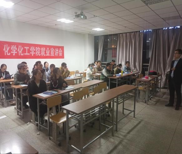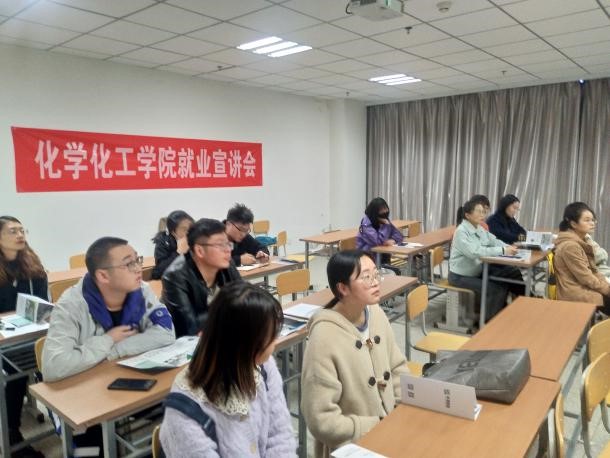 10月19日晚,化学化工学院在新校区综合实验楼E417举办了鲁南制药集团的招聘宣讲会,学院数名硕士毕业生参加本次招聘会。招聘会由鲁南制药集团招聘经理李庆龙主讲,他详细介绍了公司发展、商业模式、员工待遇以及未来发展规划。学院毕业生向企业负责人咨询了公司待遇及具体工作时间安排等问题,毕业生与公司负责人积极交流,主动递交个人简历,积极准备参加之后的面试环节。