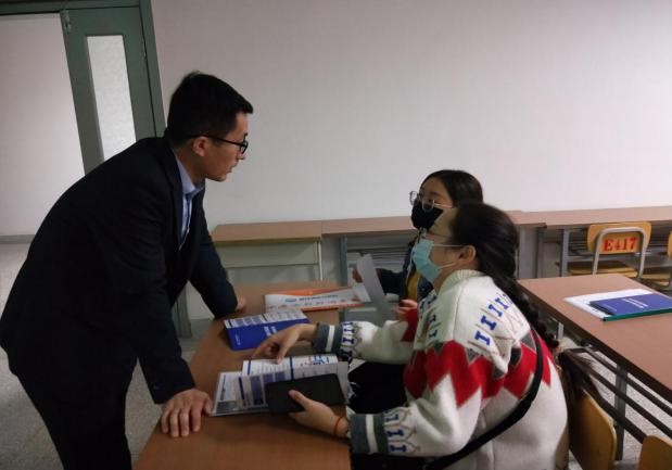 10月23日上午,365上市公司官网在新校区综合教学楼208教室举办了海门华祥医药科技有限公司校园招聘会。此次招聘会由华祥医药总经理徐本全主持,他对海门华祥进行了整体的介绍,让毕业生们清楚地了解公司的规模、发展方向等具体内容,他向毕业生们介绍了薪资待遇以及员工住宿等毕业生非常关注的多个方面。毕业生们在关心薪资前景等的同时详细地咨询了合同签订的相关事宜。参与应聘的毕业生向招聘人员投递个人简介,参加面试。