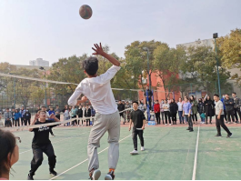 11月14日,365上市公司官网“迎新杯”排球赛冠亚军争夺赛在校本部排球场举行。