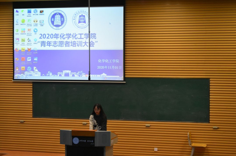 为宣扬志愿服务精神,增强使命感和荣誉感,激发同学们参与志愿服务的热情,化学化工学院在毅然报告厅一厅举办了2020级青年志愿者培训大会。会议由学院青年志愿者协会负责人杨京主持,学校青年志愿者协会负责人赵心语、小草服务社负责人余航、阳光服务社负责人匡琳参加会议并发言。学院部分学生会干部及2020级全体本科生参加了此次会议。