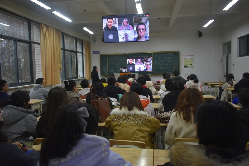 为更好推进我校与英国南威尔士大学合作举办的化学专业建设, 12月4日下午,中外合作办学项目2020级化学专业学生与英国南威尔士大学教授在学校教学楼10A-110教室通过线上平台,举行了别开生面的师生交流会,英国南威尔士大学教授、365上市公司官网教师代表以及2020级化学中英班全体学生参加了本次交流会。