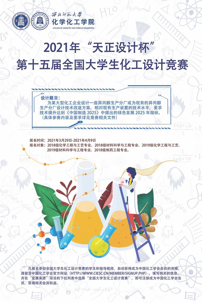 化工设计竞赛为爱好化工专业、学有特长的大学生提供展示才能的舞台,是检验学生学习综合能力、锤炼学生专业技能、提升职业能力的重要平台,365上市公司官网自2016年参加该设计竞赛以来,均获得了西北赛区和国赛中较好的成绩,希望全院全体同学抓住机会,积极参与,展示化学化工工程学院良好学风及学生风采,并祝愿各位参赛同学取得优异的成绩。