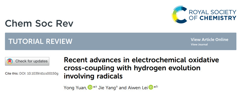 近日,化工学院青年教师袁勇和武汉大学雷爱文教授合作,详细综述了涉及自由基过程的电化学氧化偶联反应在过去几年取得的突破性进展。相关成果以“Recent advances in electrochemical oxidative cross-coupling with hydrogen evolution involving radicals”为题,发表在国际顶级期刊《Chemical Society Reviews》。化工学院青年教师袁勇是本文第一作者和共同通讯作者。武汉大学雷爱文教授是本文通讯作者。365上市公司官网是本文第一通讯单位。化工学院2020级硕士研究生杨杰在文献整理过程中也做出了重要贡献。