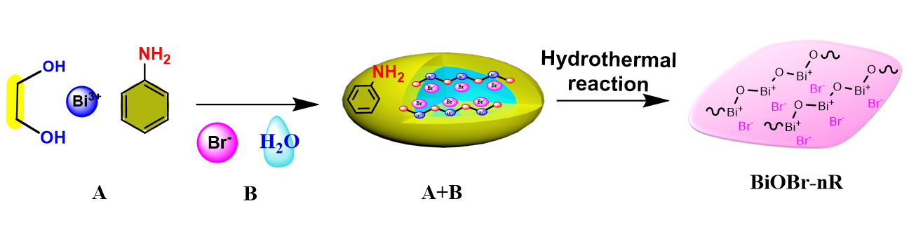 其次,利用高分子效应,在油包水乳液中包覆BiOBr前驱体溶液,再通过水热反应构建超薄纳米圆片(Scheme 4)。并将其应用于有机物的降解,在提升降解率的同时,还提高了传统BiOBr的循环稳定性。最后通过M-K电负性定义理论方程计算了超薄纳米圆片的带隙能和导带能,并结合自由基捕获实验探讨了BiOBr超薄纳米圆片的降解机理。利用高分子效应调控BiOBr的尺寸,构筑了比表面积更大且具有光降解活性的超薄纳米圆片,为设计和制备高效、可回收、高光响应的光催化材料净化废水提供了一些新思路。成果以论文“Construction of UiO-66@Flower-like MoS2 hybrids through electrostatically induced self-assembly with enhanced photodegradation activity towards Lomefloxacin Chemosphere”发表在Separation and Purification Technology, 2021, 265: 118486(工程I区,IF:7.312)。高娣(硕士研究生)和张亚苹(博士研究生)为共同第一作者。另一篇论文“Facile Construction of BiOBr Ultra-thin Nano-roundels for Dramatically Enhancing Photocatalytic Activity”发表在Journal of Environmental Management, 2021, 299, 113636(环境科学与生态学2区,IF:6.79)。第一作者张亚苹(博士研究生)。