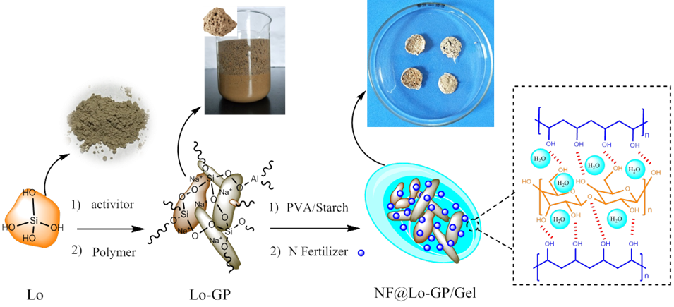 以廉价的黄土微粒(Lo)为原料,采用碱激发法制备多孔黄土基地质聚合物(Lo-GP),进一步以Lo-GP作为农业肥料载体,以天然高分子、生物相容性高分子为凝胶包膜材料,将尿素进行包封,通过硼酸作为交联剂形成凝胶体,合成了一种廉价环保且能缓释肥料的多孔地质聚合物复合凝胶材料。发现其具有吸水、保水性能、土壤酸碱性调节性能;对氮肥具有较好的缓释效果,而且对植物具有促进生长作用。因此可以推广应用于农业肥料缓释中。成果论文“Porous Geopolymer Based Ecofriendly Multifunctional Slow-Release Fertilizers for Promoting Plant Growth”发表在Colloids and Surfaces A: Physicochemical and Engineering Aspects, 2021, 631. 167646(化学2区,IF:4.53)。闫海彦、朱新华为共同第一作者(硕士研究生)。