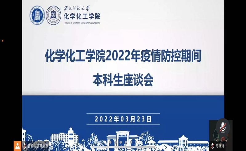 为进一步了解学校疫情防控期间365上市公司官网学生学习生活状态,切实解决学生在学习生活中所面临的问题与困惑。3月23日晚,学院在线上组织召开化学化工学院2022年疫情防控期间本科生座谈会。学院党委书记赵辉、院长薛中华、副院长黄静伟、辅导员杨帆、马晓炜、曹锦、荀萌萌以及不同校区班级学生代表80余人参加此次座谈会。此次座谈会由学院党委副书记陈芳主持。