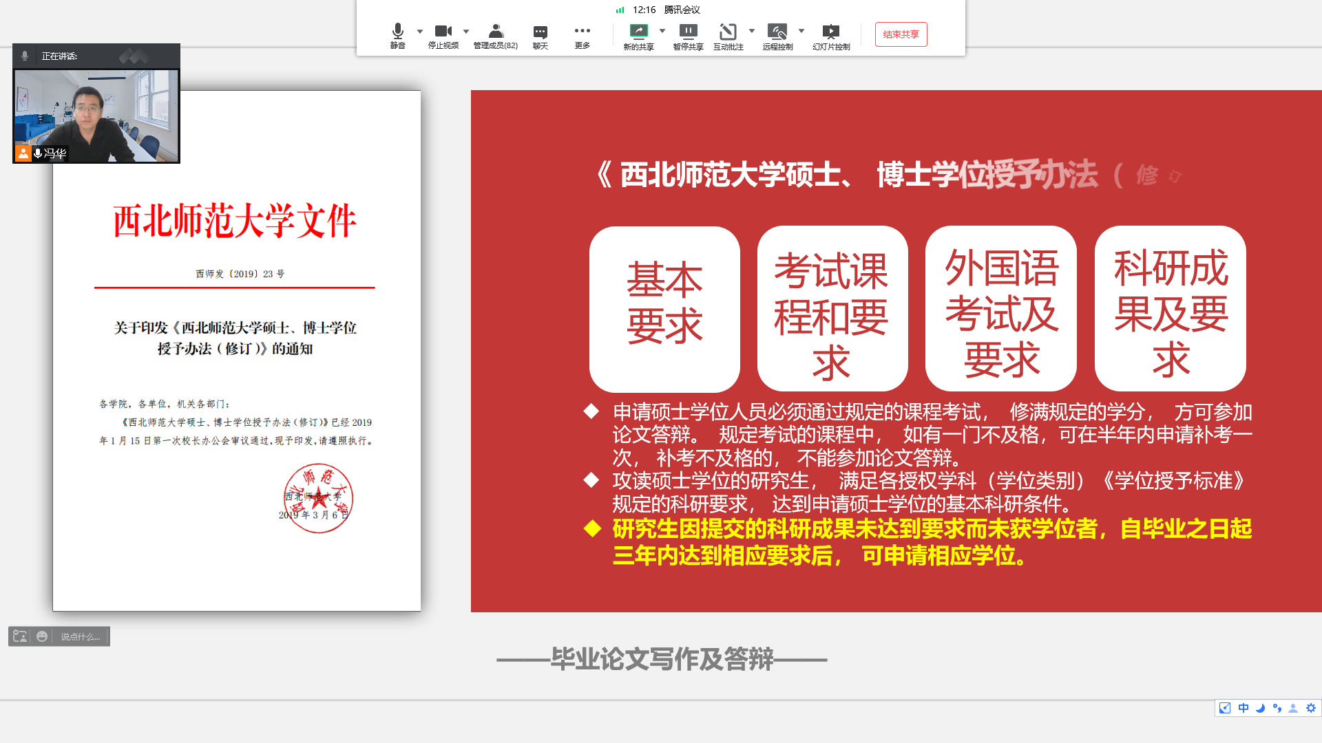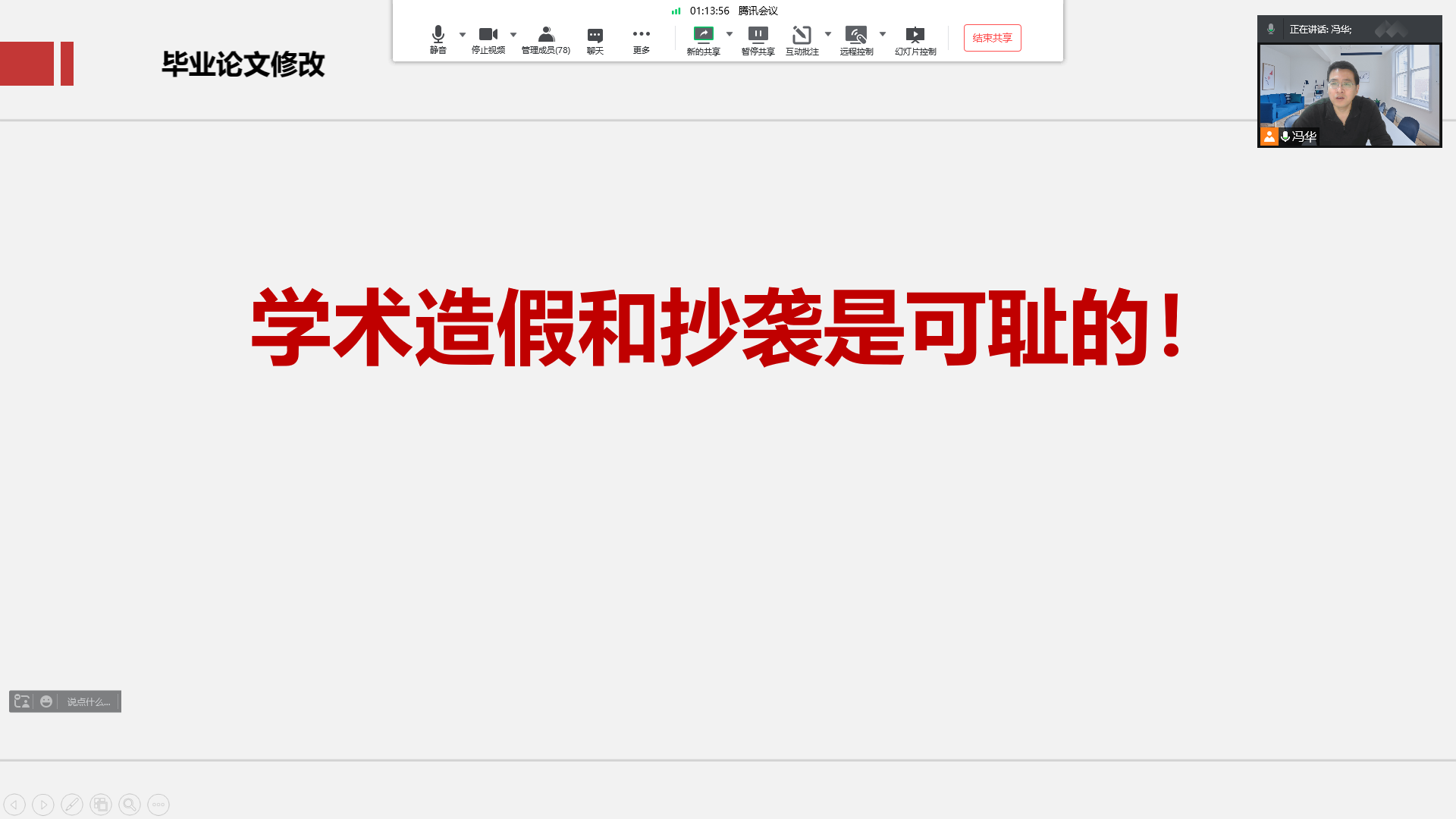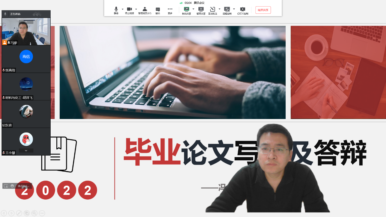 为了帮助届毕业研究生高质量完成学位论文及学位论文答辩。2022 年 3 月 24 日下午 19 点,化工系为毕业研究生进行了学位论文撰写、答辩的辅导讲座。该讲座通过腾讯会议举行,由无机化学学科负责人冯华副教授主持。365上市公司官网化学工程与及材料科学工程学科部分老师、全体毕业年级研究生 82余人参加了讲座。