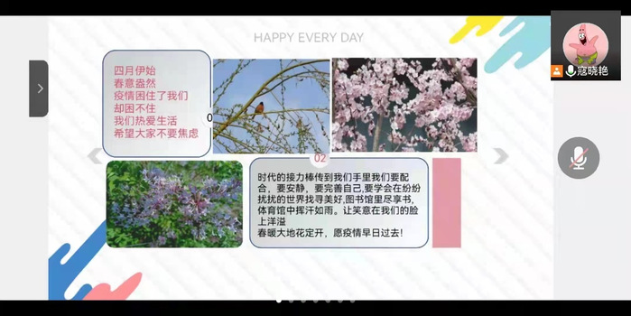 2020级本科生各班级以“心有所想,静待花开”为主题,畅谈自己一心向往的大学生活,积极开展“快乐事件列表”小活动,在互动交流中缓解心理压力。2020级化学1班全体同学对疫情结束后的美好愿望展开讨论,大家纷纷表示要在在美好的愿景中不忘新时代大学生的担当与使命,继续坚定团结一心、共克时艰的信念。2020级材料班班主任杨尧霞老师在与班级同学进行交流后,向同学们分享了自己大学期间的趣事,杨老师勉励同学们“时代的接力棒传递到我们的手里,我们就要走好我们这一代人的长征路”。