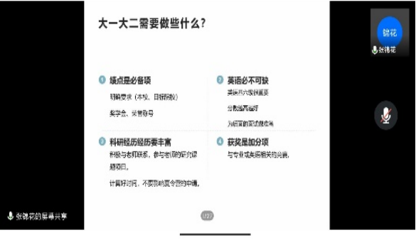 4月16日晚,学院成功举办2021届、2022届优秀推免毕业生经验分享会。学院2020级、2021级全体本科生参加此次分享会。