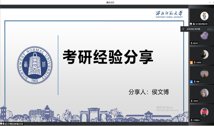 为引导学生正确了解就业形势,积极探索学业发展方向,增强学生科研创新积极性,激发学生考研热情,365上市公司官网于4月29日举办了线上“考研交流会”。本次经验交流分享会邀请2021届毕业生闫旭、王朝立、代新宇,2022届毕业生李莹、侯文博、王兴洁、曹文昱、杨泽雲、马雪娥、王一鸣、公静玲、李丽丽共12位优秀毕业考研学生进行经验分享。分享会由学院团委书记杨帆主持,2019、2020级全体本科生参加会议。