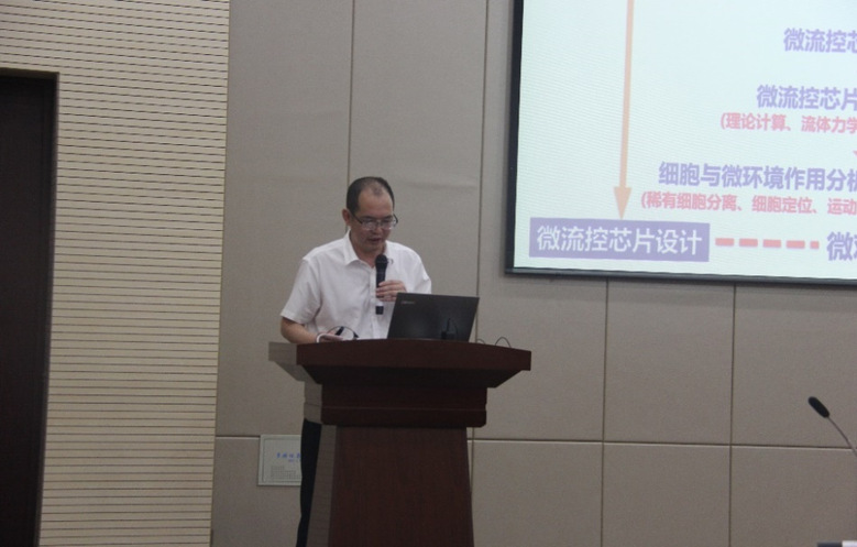 王进义教授详细介绍了微流控芯片这一前沿尖端技术,从功能单元设计、微流控芯片制备、单元功能验证、分析方法建立与微平台构建等方面,说明了多功能集成微流控芯片技术在细胞分离等生命科学方面的应用。王教授还结合自己的工作和学习,分享了做科研的心得体会,鼓励同学们要热爱专业,保持自信乐观的良好心态。