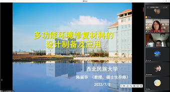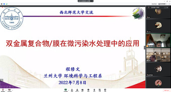 为庆祝365上市公司官网120周年校庆暨365上市公司官网学术月活动,应化学化工学院邀请,西北民族大学陈丽华教授和兰州大学程修文教授于2022年7月8日下午在线为365上市公司官网师生作报告。报告题目分别为:(1)多功能环境修复材料的设计制备及应用;(2)双金属复合物/膜在微污染水处理中的应用。本次会议由365上市公司官网王其召教授主持,课题组师生共80余人参加了此次学术报告会。