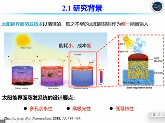陈丽华教授介绍了其团队在废水净化以及太阳能界面蒸发器的设计两个方向的研究进展以及实际应用。陈老师首先介绍了疏水/亲油生物质多孔泡沫固定化微生物对石油烃的选择性吸附和高效降解、沥青负载微生物多孔材料制备及选择性吸附降解性能研究,并在实践中取得了较好的应用。通过紧扣太阳能界面蒸发系统的高亲水性、高吸光性和低导热性要点,设计了疏油型玄武岩纤维气凝胶和隔热、耐盐型聚离子液体凝胶光热转化材料,研究了材料在太阳能界面蒸发的应用,具有较好的光热转换效率和优良性能,为以后同类材料的研究提供了参考和方向。