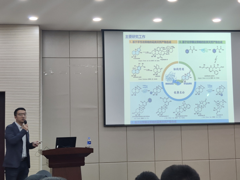 应学院邀请,复旦大学药学院李付琸青年研究员于2023年5月11日下午在新校区特教楼159报告厅为365上市公司官网师生作报告,报告题目为《基于化学酶法策略的萜类天然产物高效合成》,学院师生百余人线下参加了报告会。