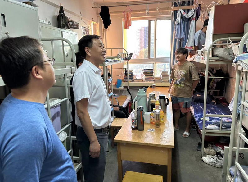 走访过程中,老师们与学生亲切交谈,了解同学们的学习情况、兴趣爱好、暑假生活、新学期安排等,仔细查看宿舍各种设施是否完善、是否存在安全隐患,并叮嘱同学们要养成良好的生活习惯,平时注意用水用电安全,严防各类诈骗,营造舒适、安全、整洁的宿舍环境。在毕业班学生走访过程中,院领导和班主任询问了同学们的职业规划、就业意向、考研准备等,鼓励同学们在认真学习、积极备考的同时做好就业准备。