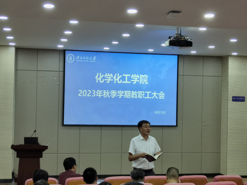 8月29日下午,学院召开2023年秋季学期教职工大会,会议通报了2023年暑期重点工作,结合学校工作安排,部署了2023年秋季学期学院各项工作,全体教职工参加会议,会议由学院党委书记赵辉主持。