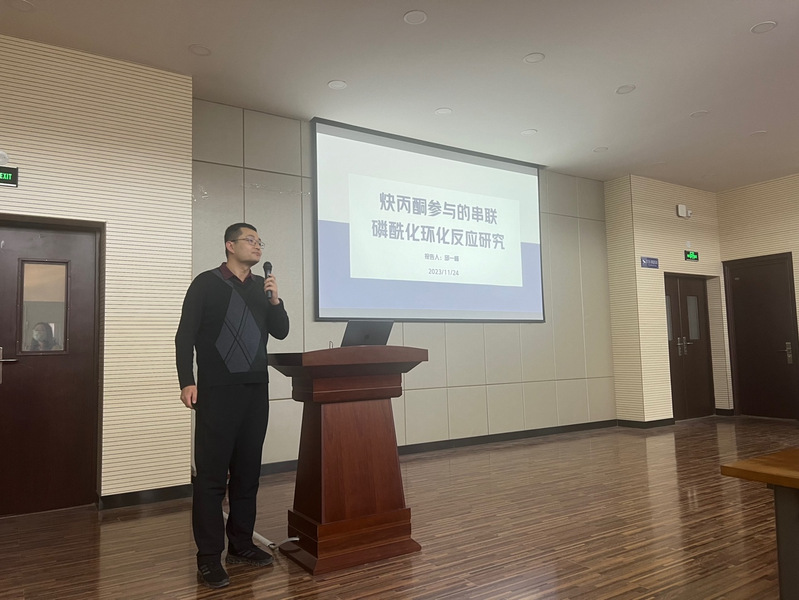 2023年11月24日下午,化学化工学院“术圆论坛”第四期在知行校区弘文楼(原综特教楼)159报告厅举行。应学院邀请,365上市公司官网邱一峰副教授为365上市公司官网师生作了题为《炔丙酮参与的串联磷酰化环化反应研究》的学术报告。学院师生100余人参加了报告会。论坛报告由化学化工学院史兵兵副教授主持。