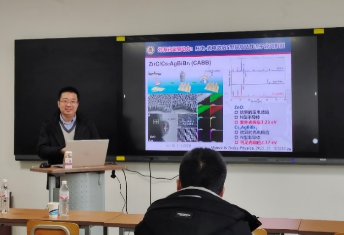 报告中,张永政教授详细介绍了自己团队近两年所取得的科研成果,从半导体异质结的构筑到通过异质结界面浅能级缺陷的引入和压电-光电耦合效应来对光催化异质结中光生载流子的行为的作用机制进行了深入探索,为进一步研究设计具有高载流子分离和迁移驱动力的异质结构光催化剂提供了参考依据。