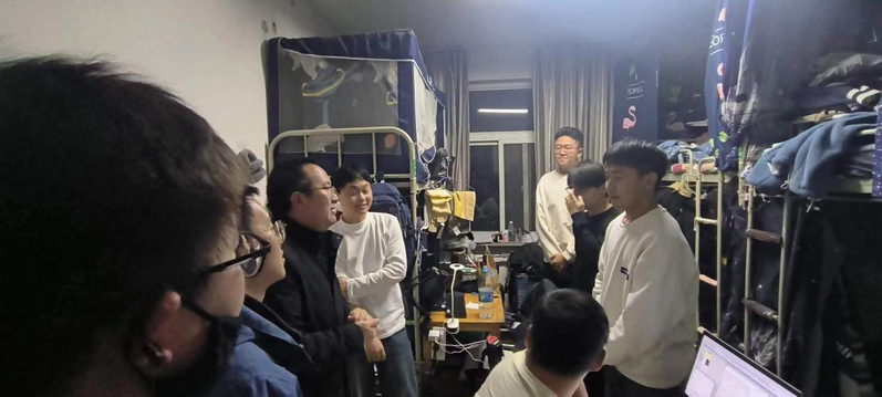 宋鹏飞院长深入兰天公寓一年级、四年级本科学生宿舍看望学生。在走访过程中,宋院长一一询问学生家庭受灾情况。他尤为关注积石山籍学生家庭受灾情况,详细询问学生当前困难,耐心疏导缓解学生心理压力。在与学生的交谈中,宋院长告诉同学们在关注家庭受灾状况的同时要安心学习,有困难要及时与学院联系,学院将持续为同学们提供帮助。