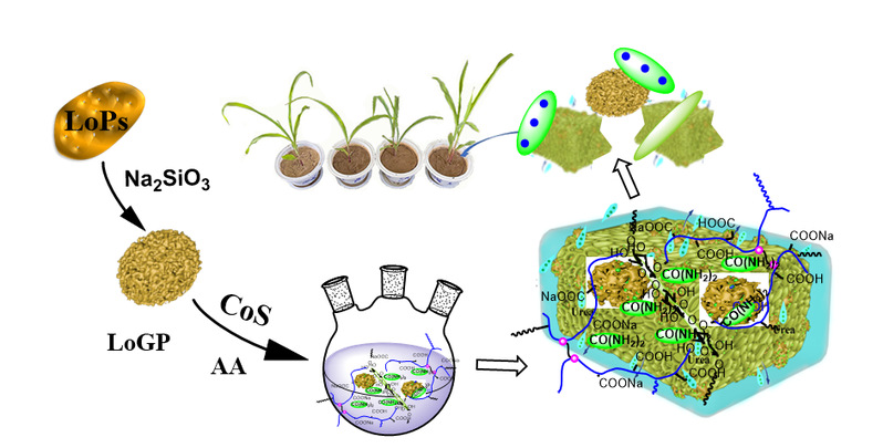 以天然廉价的黄土(LoPs)为原料,采用碱/酸激发法制备多孔黄土基地质聚合物(LoGP),进一步以LoGP作为农业肥料载体,以功能高分子和废弃生物质为凝胶包膜材料,将尿素进行包封,合成了一种廉价环保的可稳固边坡的地质聚合物复合凝胶缓释材料(WS-Po/PGs)(Scheme 5)。发现其具有溶胀、保水性能、土壤酸碱性调节性能和边坡防护性能;对氮肥具有较好的缓释效果,而且对植物具有促进生长作用。因此可推广应用于农业肥料缓释和边坡防护中。成果论文“Wheat straw fibre based semi-IPN composite: Preparation and evaluation as a matrix for water and fertilizer release and in slope reinforcement”发表在Sustainable Chemistry and Pharmacy, 2023, 36: 101250(化学2区,IF:6.0);杨花为第一作者(硕士研究生)。另一篇论文“Fabrication of stalk fiber/geopolymers-based slow-release fertilizer with agricultural waste and loess for promoting plant growth”发表在Journal of Environmental Chemical Engineering, 2023, 11: 109481(工程技术2区,IF:7.7);杨花和戴锋利为共同第一作者(硕士研究生)。还有一篇“Waste feather keratin composited geopolymer hydrogels for improving plant water retention and N nutrients utilization”发表在Colloids and Surfaces A, 2024, 682: 132925(化学2区,IF:5.2);张峰为第一作者(硕士研究生)。