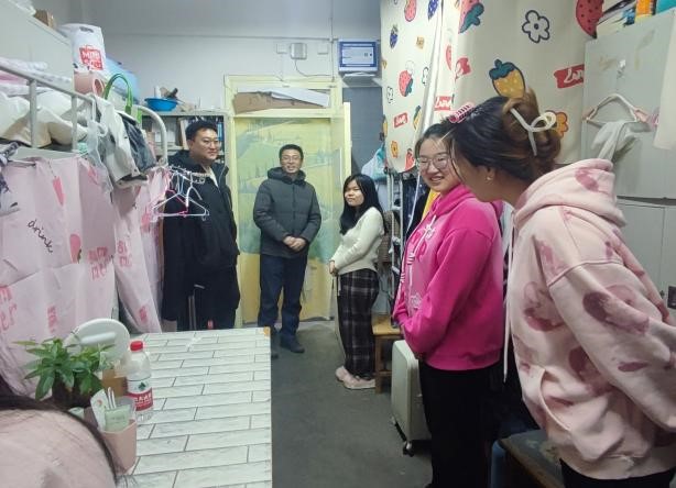 郭昊副院长、苏瀛鹏副院长到知行校区研究生公寓看望学院研究生,要求同学们开展实验时要将实验室安全谨记心头,毕业生要把握好时间节点完成学位论文的撰写,在学习和科研的同时要保持良好的身体健康状况。朱淑芹老师一行前往党校学生公寓看望2020级本科生,耐心关切同学们的生活,询问同学们的就业情况、考研情况,鼓励同学们主动积极参与各类招聘,把握好就业黄金期。陈芳副书记、史兵兵副院长来到兰天公寓看望了一年级本科生,要求同学们及时调整状态,在校园生活中高度重视宿舍消防安全、出行安全,提高防骗反诈意识,积极调试情绪保持健康的心理状态。黄静伟副院长到知行学生公寓看望三年级本科生,亲切询问师范生教育实习地点选择情况,要求同学们在锻炼讲课能力的同时注重提升班级管理等综合能力。