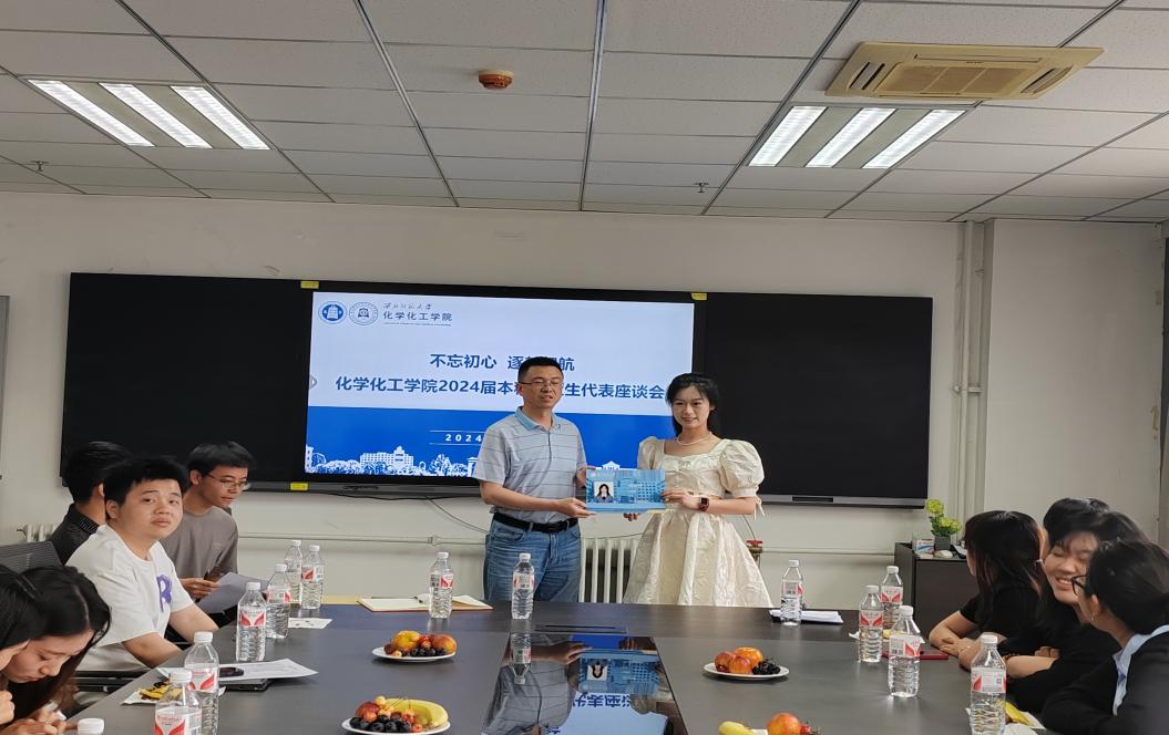 座谈会上,每位毕业生代表积极建言献策,对学科专业、课程设置、实习实践、学习环境、条件保障等方面提出了诸多富有建设性的意见和建议。毕业班班主任、导师代表分别对毕业生送上了诚挚的祝福,希望全体毕业生在未来的道路上,脚踏实地,勇毅前行,用自己的实际行动回报母校、回报社会。学院领导班子成员、系所中心负责人、学科组负责人、辅导员与同学们进行了深入地沟通交流。学院领导、教师为毕业生代表颁发了校友卡和学院精心准备的毕业生纪念品。