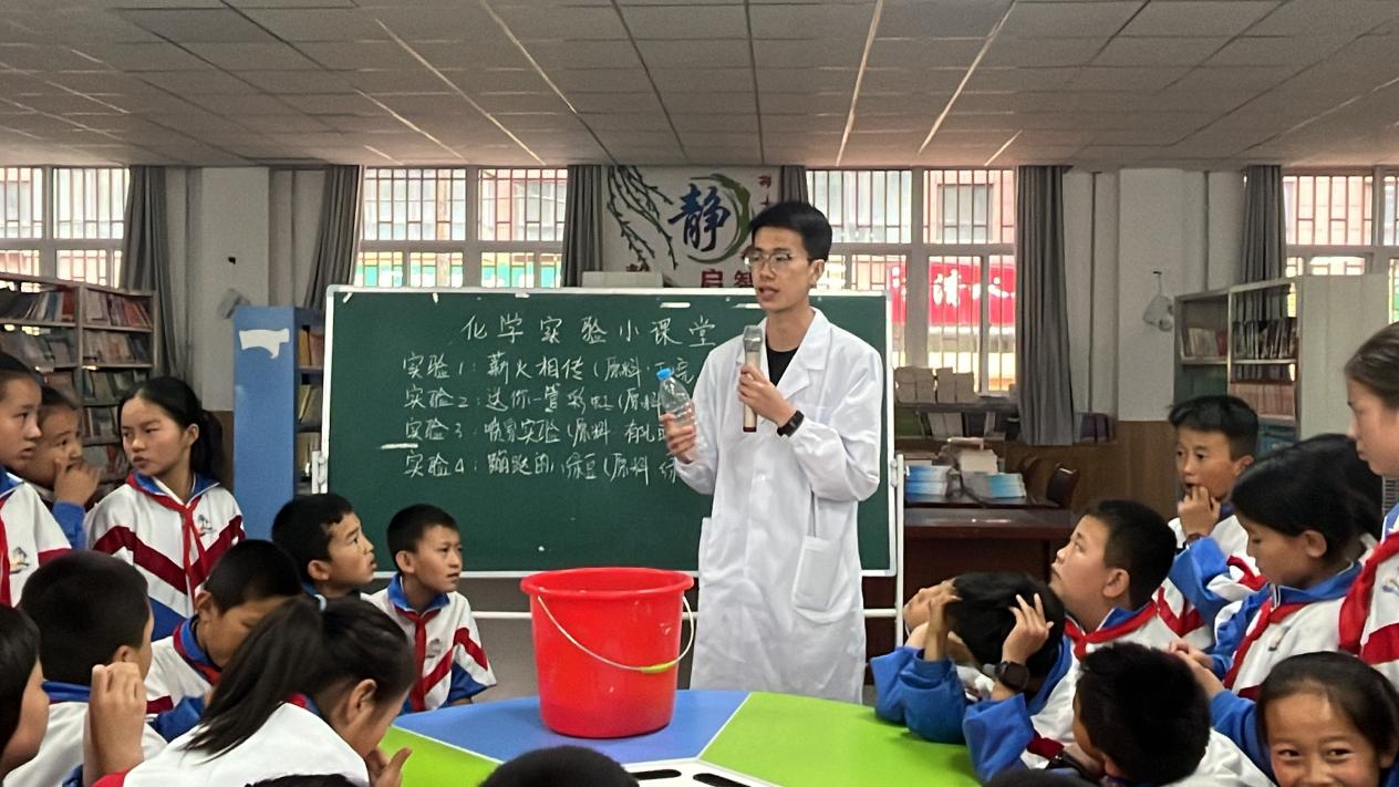 实践团志愿者们根据专业特点,不仅传授基础化学知识,还精心设计一系列生动的化学实验,激发孩子们对科学世界的好奇心。“走进化学”科普讲座,帮助孩子们了解化学相关知识,感受化学与生活的密切联系;通过送你一管彩虹、蹦跶的小绿豆、薪火相传等化学趣味科普实验,激发孩子们对科学的兴趣;在趣味科普实验结束之后,志愿者带领孩子们通过营救队友、接力跑、击鼓传花等游戏环节加深与孩子们的交流,建立友谊,快乐成长。