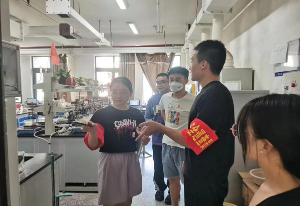 发挥党员先锋作用,确保安全开展实验。针对学科属性和学生实验工作实际,学院进一步加强暑期实验室安全管理,织牢实验室安全网格化网络,积极落实实验室安全整改措施,在学院值班院领导、实验室楼层、巡查员、实验室负责人为主的网格化管理体系基础上,成立研究生党员先锋队,对实验长室安全开展巡查监督,确保学院各平台、各实验室严格遵守学校有关安全管理规定,牢固树立安全意识、红线意识,把安全放在第一位。学院于7月25日,由党委书记带队,组织班子成员、研究生党员先锋队成员开展实验室安全检查,再次强调安全底线,要求各实验室负责人严格把守实验安全关,落实落细第一责任人职责。