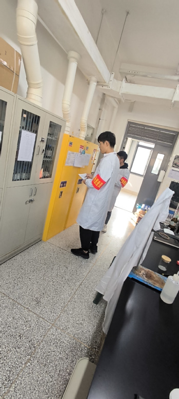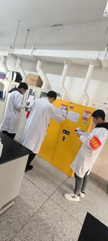 在学院各有机实验室内,党员们手持检查表,对实验室的每一个角落进行了仔细的检查。他们不仅检查了实验台面的清洁度,还特别关注了试剂瓶的摆放是否整齐、仪器设备的维护是否到位以及实验室的通风和照明情况。