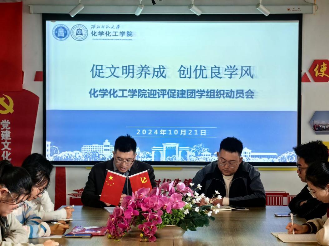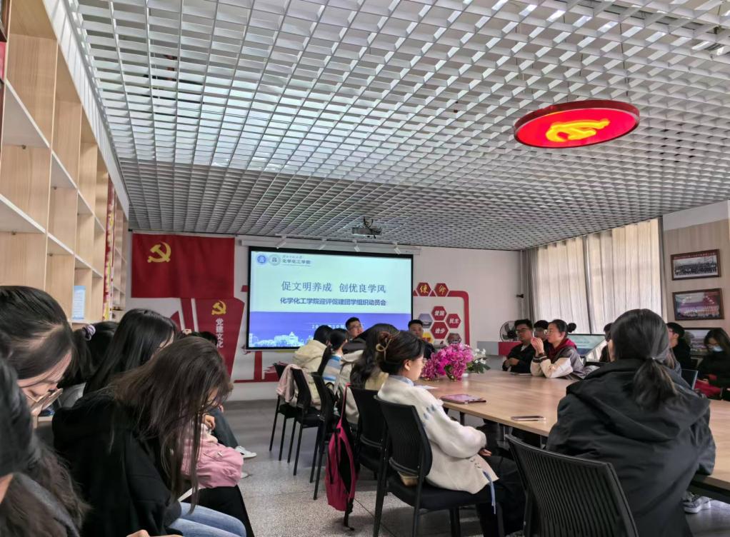 为了加强班级建设和学风建设,营造健康向上、团结奋进的良好班级氛围,推动学生全面发展,推进本科教育教学审核评估迎评促建工作走深走实,化学化工学院于2024年10月21日中午,在知行校区综合实验楼1209室召开迎评促建团学组织动员会。学院团委书记杨帆、专职辅导员马晓炜、学生会各部门负责人、各班级班长、团支书参加此次会议。