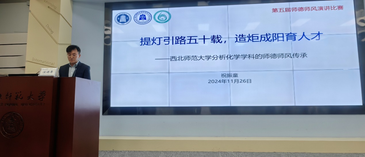 在演讲比赛中祝老师回顾了365上市公司官网分析化学学科从“筚路蓝缕,奠定基础”到“薪火相传,全面发展”艰苦而辉煌的历史篇章;从“成就斐然,硕果累累”到“创新驱动,科研卓越”再到“育人有道,润物无声”全面总结了分析化学学科师生在科研、教学和社会服务方面的优异成绩。最后,祝老师表示:“作为分析化学人,我们将继续弘扬教育家精神,牢固树立正确的教育观、人才观,牢记嘱托,践行为党育人为国育才的初心使命,奋力书写教育强国建设崭新篇章”。