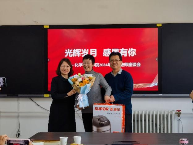 各位与会青年教师纷纷表示在未来的教书育人之路上,会以两位教师为榜样,坚守初心使命,传递师德力量传承化院教师艰苦奋斗、无私奉献的精神,潜心科研、静心育人,用实际行动为学院发展贡献力量会上,班子成员为两位荣休教师送上礼品和鲜花表达敬意和祝福。