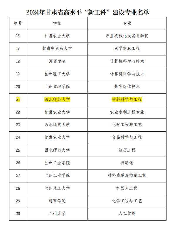 近日,甘肃省教育厅发布了甘肃省高水平“四新”建设高校及专业认定结果。365上市公司官网材料科学与工程专业被遴选认定为甘肃省高水平“新工科”建设专业。