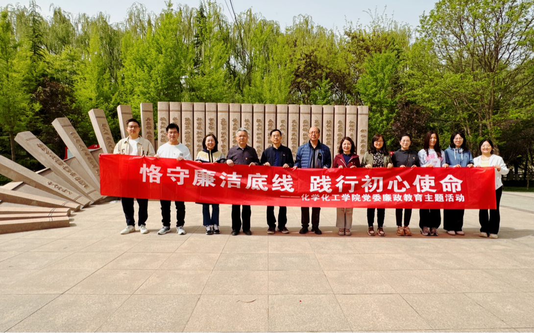 为加强党风廉政建设,深入贯彻中央八项规定精神学习教育走深走实,4月30日,化学化工学院党委组织领导班子、党委委员、党支部书记、年轻干部赴兰州廉政文化主题公园,开展“恪守廉洁底线 践行初心使命”廉政教育活动,以“现场”为课堂,以“案例”为教材,进一步强化党性修养,增强纪律意识和规矩意识,筑牢廉政守纪思想根基。