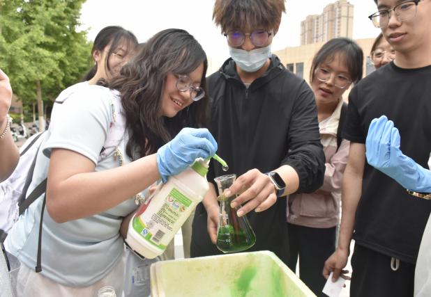 2025年5月26日,化学化工学院于知行校区创客广场,以一场别开生面的“5•25——我爱我”心理健康节活动,点燃了师生们对心灵探索的热情。本次活动巧妙地将深奥的化学知识与心灵解压相结合,编织出一场知识与情感交织的盛宴,数百名师生踊跃参与,共同踏上了一场心灵减压的奇妙之旅。