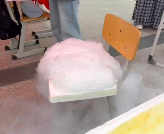 步入“压力蒸腾站”,干冰升华产生的云雾缭绕四周,将原本无形抽象的烦恼,巧妙地具象化为可触摸的水汽。同学们漫步于这如梦如幻的云雾之中,仿佛置身于一个远离尘嚣的仙境,所有的忧愁与压力都在这朦胧而神秘的氛围中悄然蒸腾,留下的是心灵的宁静与平和。