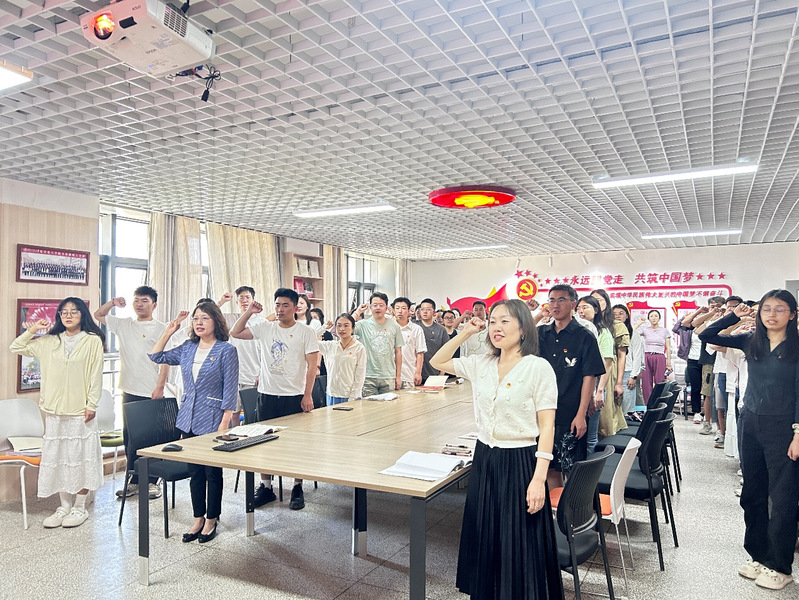 开讲之前,全体毕业生党员重温入党誓词,党员同志面向党旗庄严宣誓,在铮铮誓言中重温入党初心。
