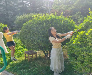 活动现场,同学们热情高涨,分工明确,以饱满的精神状态投入到各项劳动中。校园公共卫生维护区域,同学们认真清扫每一个角落,让校园道路变得干净整洁;投身于除草、修剪花木工作的同学们,熟练地拔除杂草、修剪多余的枝叶,使校园绿植更加整齐美观;负责松土的同学挥舞着工具,为花草创造良好的生长环境,为校园增添了一抹生机。经过大家的共同努力,校园环境焕然一新,原本杂乱的角落变得整洁有序,绿植在精心修剪后焕发出勃勃生机,整个校园仿佛一幅和谐美丽的画卷。