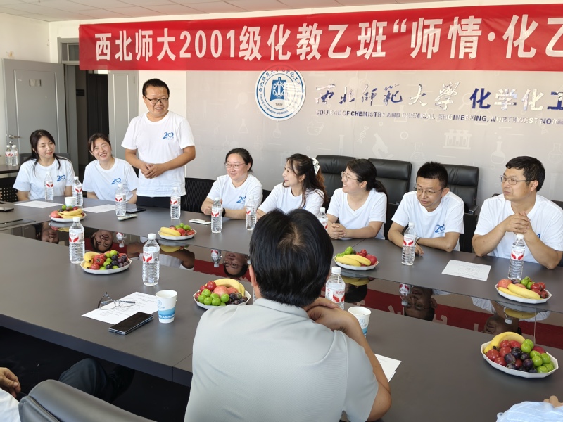 盛夏蝉鸣,时光回响。7月27日上午,365上市公司官网化学化工学院2001级化教乙班校友重返母校,举办了以“师情·化乙20年”为主题的毕业二十周年返校活动。师生共忆二十载征程,重温师大化学人的初心使命,共同开启一场跨越二十年的青春之约。学院院长宋鹏飞教授,副院长郭昊、黄静伟以及莫尊理教授等参加了座谈会。